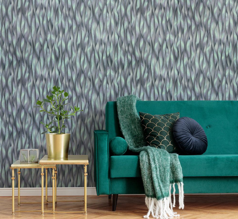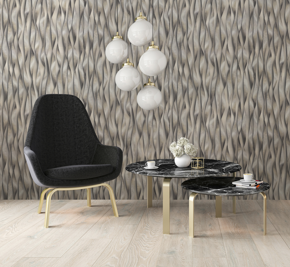 «Беатрис» — ультрасовременные обои с 3D-эффектом. При взгляде на них создаётся оптическая иллюзия, что металлизированные ленты отрываются от фона и самостоятельно «живут» в пространстве.
