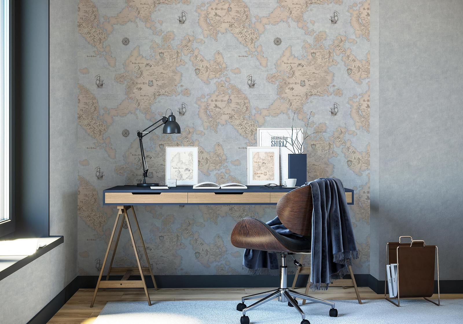 Нежные бежевые, песочные и землистые оттенки сочетаются с акцентами морского синего и графитового серого, каждый из которых воспроизводит ощущение старины и вечности. Цвета, словно сошедшие с карт старинных мореплавателей, добавят интерьеру теплоту и глубину.