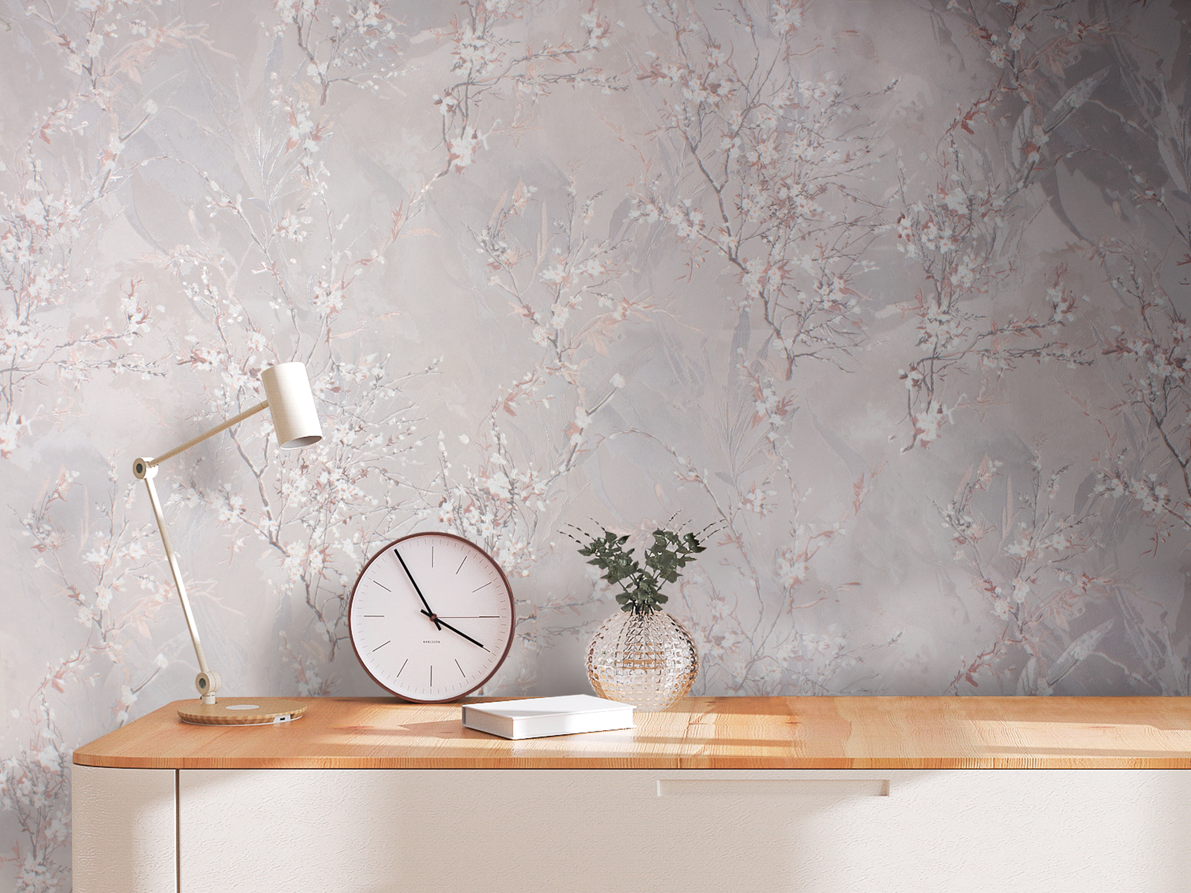 ISABEL очень нежная, цветущее дерево словно нарисовано вручную мастером на матовом шелке. Маленькие цветочки органично вписаны в фон, создавая вместе очень гармоничную композицию, где много воздуха и продуманы мельчайшие элементы.