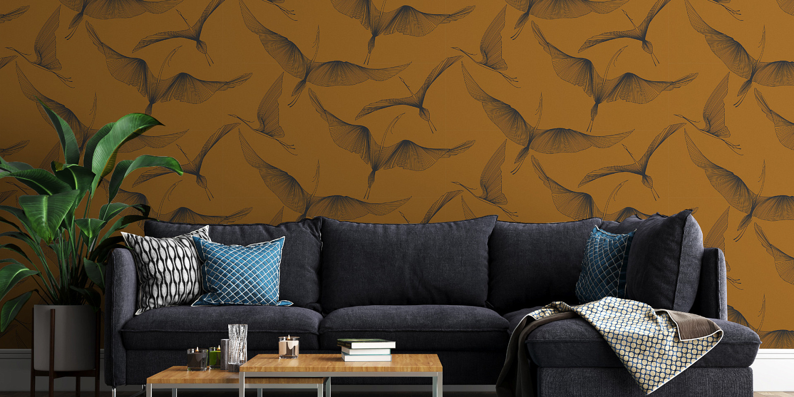 Матовый фон, металлизированный рисунок и изящные изгибы каждой птички создают эффект тканого полотна, наполняя интерьер свободой и грацией. Не забудьте обратить внимание на однотонный фон, который обеспечивает динамичность и контрасты между элементами. Эти материалы дают обойным покрытиям особое ощущение текстуры, создавая гармоничное сочетание между тканью и стенами. Силуэты птиц символизируют свободу и независимость, и передают это настроение пространству вокруг. Их фантазийный полет вдохновляет и притягивает взгляды.