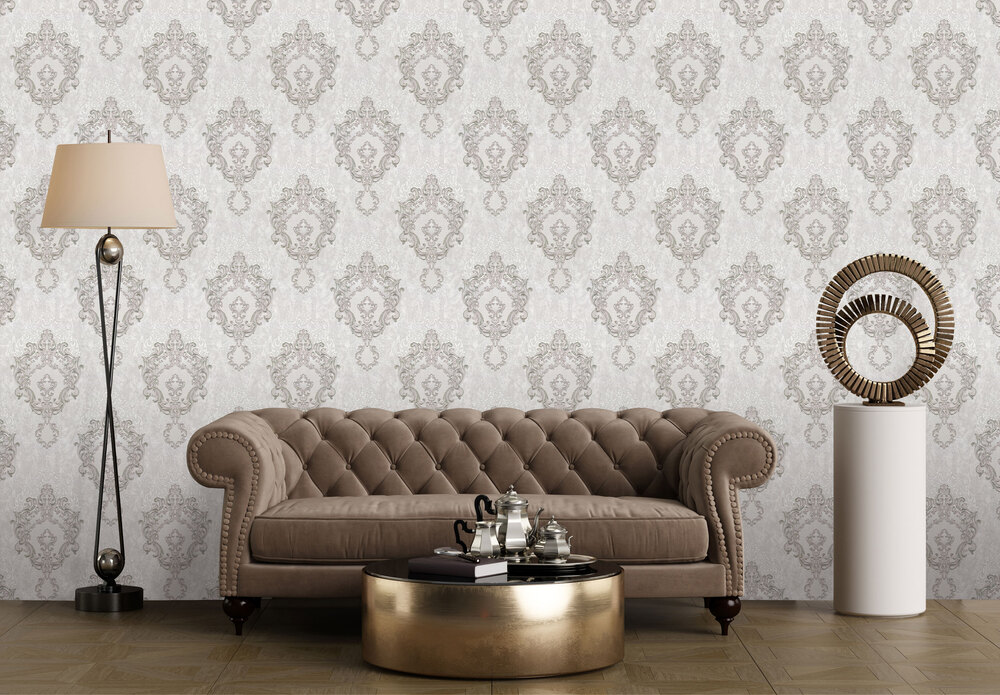 Рельефные королевские дамаски, усеянные бриллиантовыми блестками, обрамлены фамильными вензелями. Этот художественный приём роднит их с ювелирными диадемами, которые носили милые создания императорских семей.