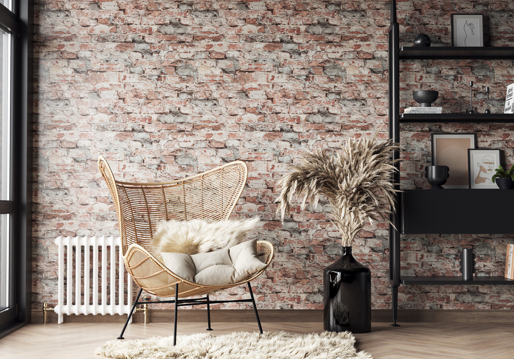 Эстетический дуализм Industrial соединяет два декоративных начала – монолитный бетон и брутальный лофтовый кирпич. Оба сохраняют актуальность в современном дизайне интерьера, несмотря на смену вкусов и тенденций. Старинная стена, вымощенная кирпичом с элементами штукатурки, превращает комнату в мастерскую или галерею, где каждый сможет ощутить себя творцом. Плотная фактура хорошо скрывает неровности стен. Матовая имитация потертых от времени кирпичей эффектно создает индивидуальность и независимость стиля.