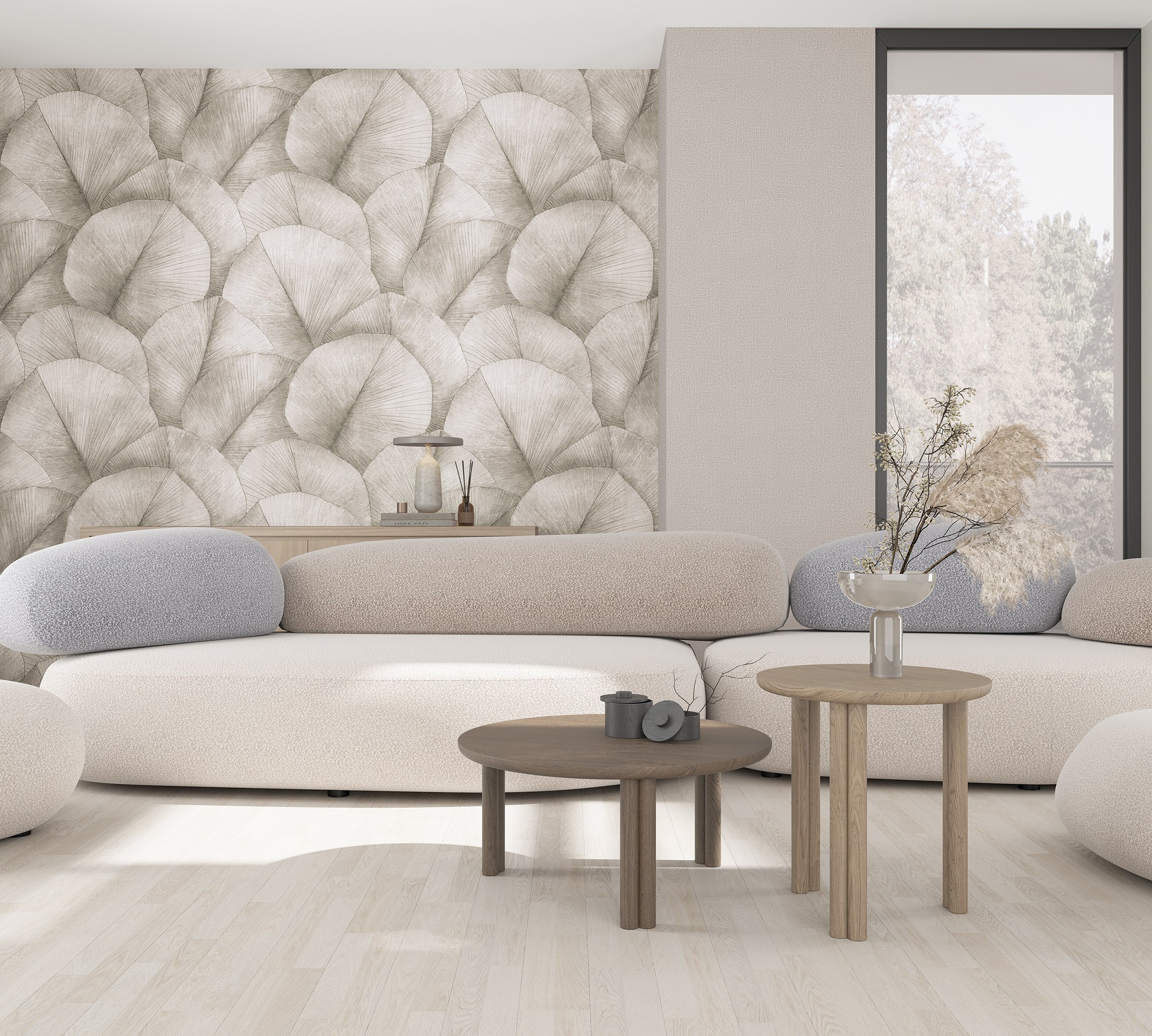 Естественный узор в виде крупных листьев — это некое переосмысление невероятной красоты природы Японии, выполненной в современном стиле. Тонкий, чистый узор создает непринужденную обстановку, превращая любой интерьер в островок тишины и безмолвия.