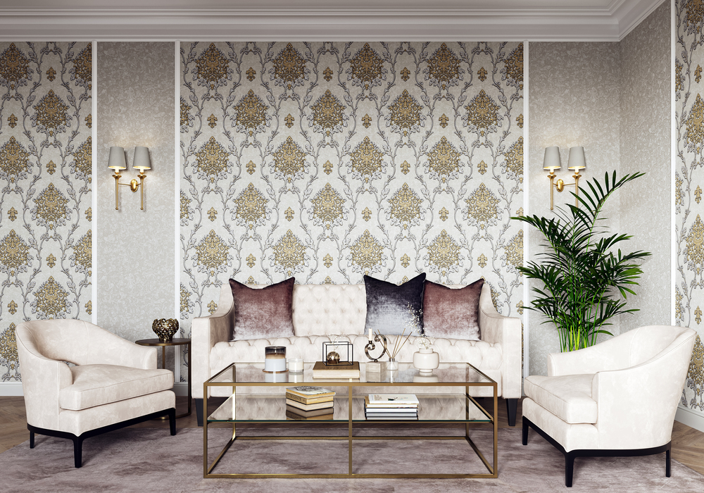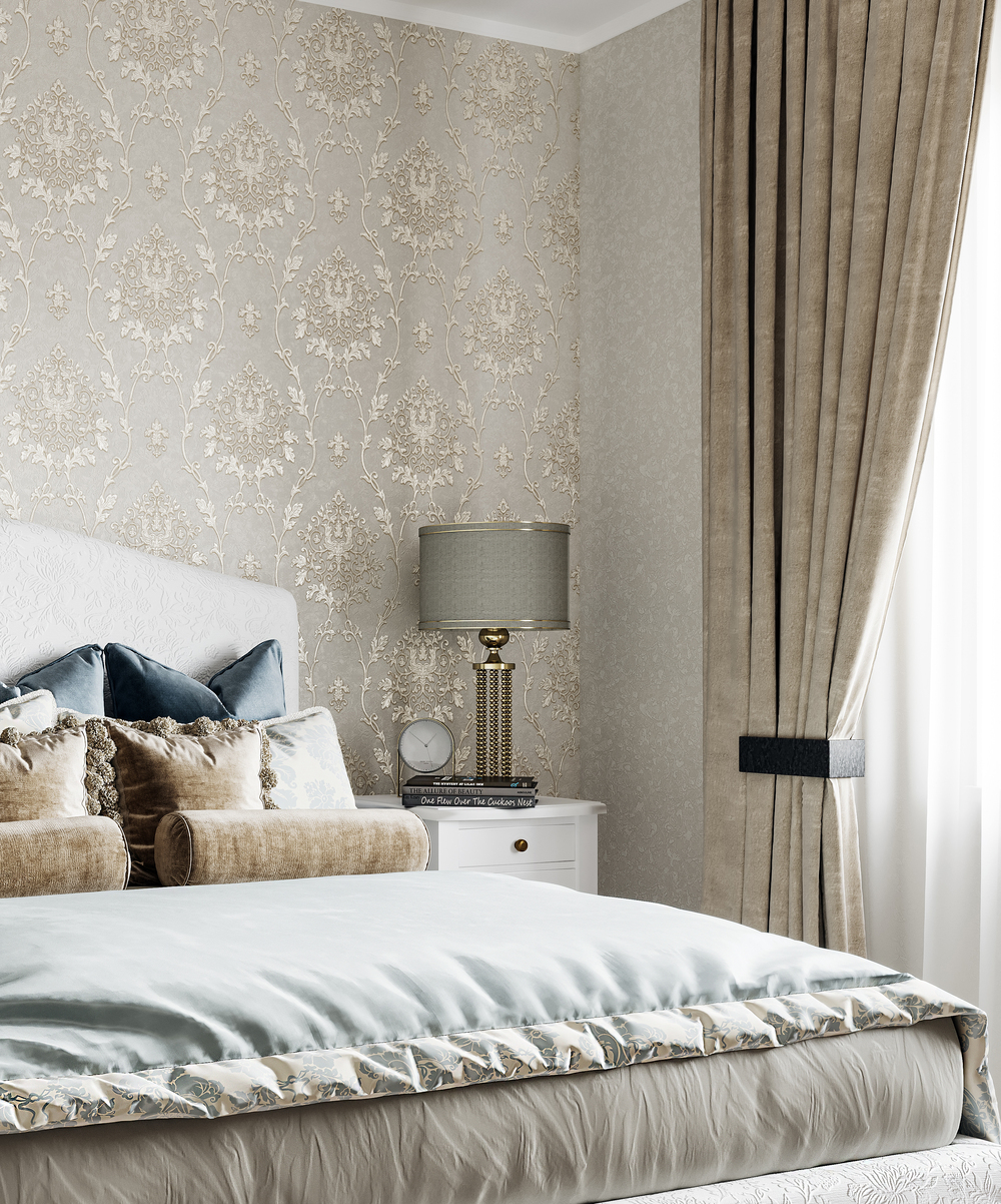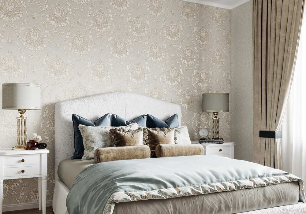 Фон обоев Zarina с приятной матовой текстурой. Он напоминает ажурную ткань. Фактура достаточно плотная и объемная, чтобы скрыть мелкие погрешности стен.