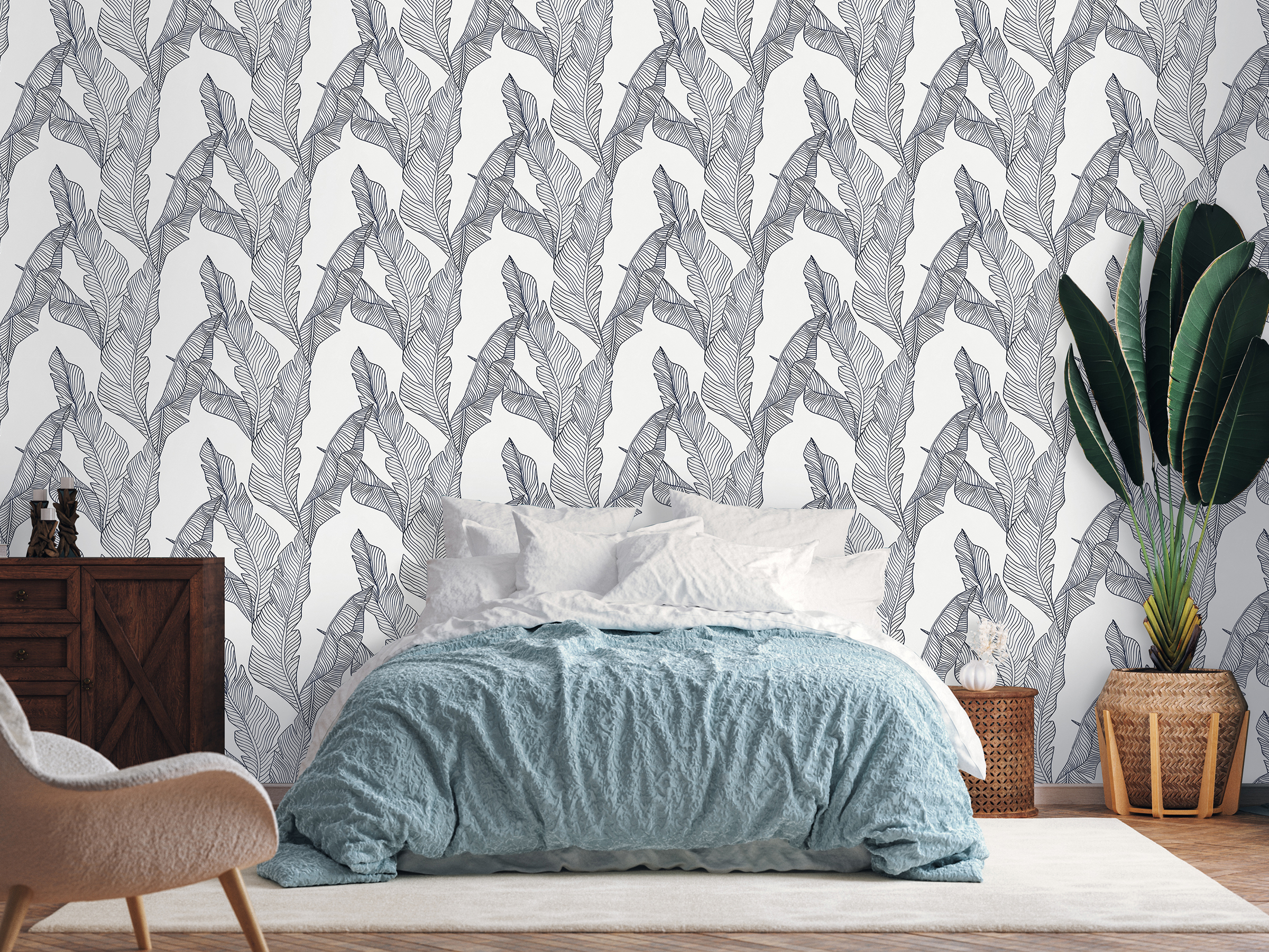Обои с контрастным рисунком — прекрасный инструмент для создания акцента в интерьере. Ярким стеновым панно из обоев можно улучшить пропорции помещения, выделить значимую зону, и конечно, добавить изюминки. Коллекция PANAMA от Victoria Stenova с яркими большими, но в тоже время прозрачными и невесомыми листьями банана «работает» по такому принципу.