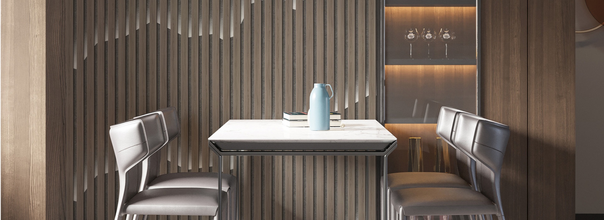Отделка рейками - популярное оформительское решение. Коллекция "Рикардо" - реалистичная имитация реек с подсветкой, которая позволяет с меньшими затратами расставить модные акценты в интерьере.