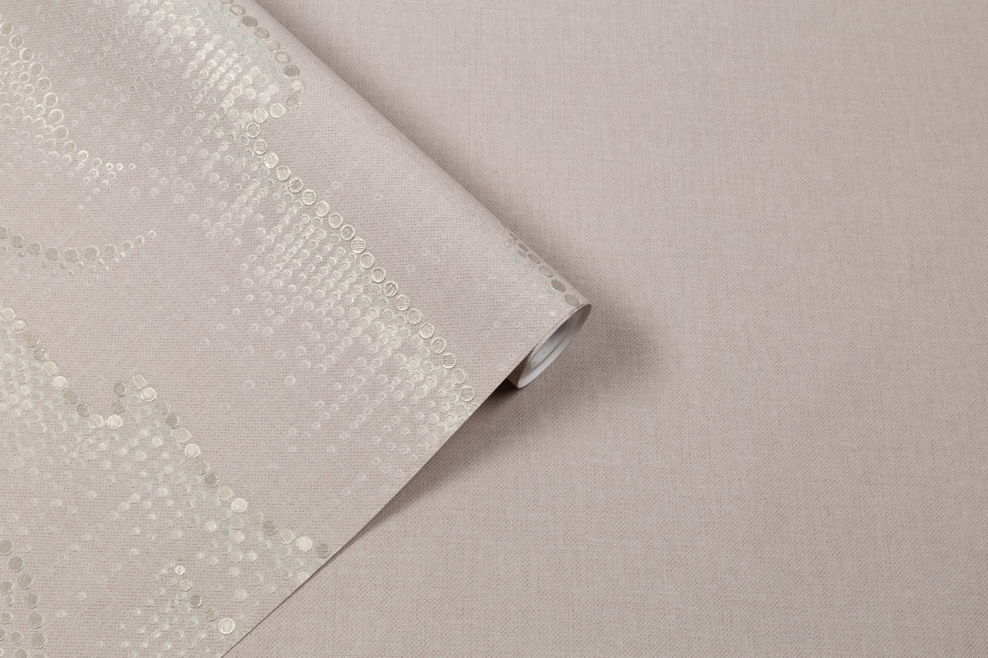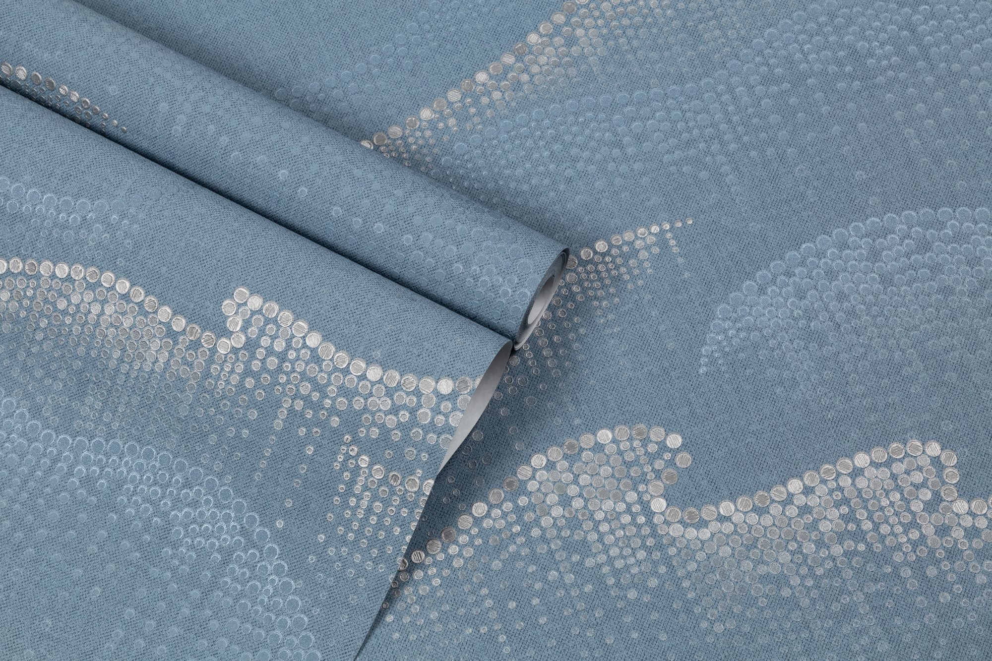 Сверкающие поинты покрыты матовым перламутром и металлизированным декором. Благодаря градиенту мерцающие линии мотива тают, постепенно растворяясь в пространстве и оставляют сияющее послевкусие. Это делает рисунок динамичным и визуально увеличивает интерьер.