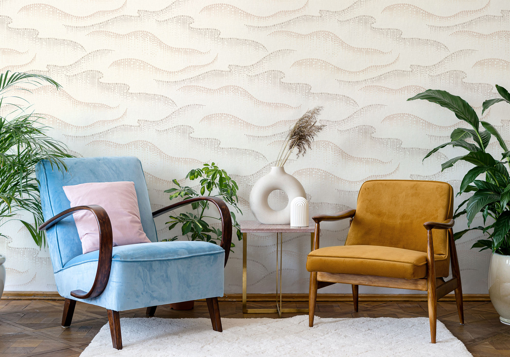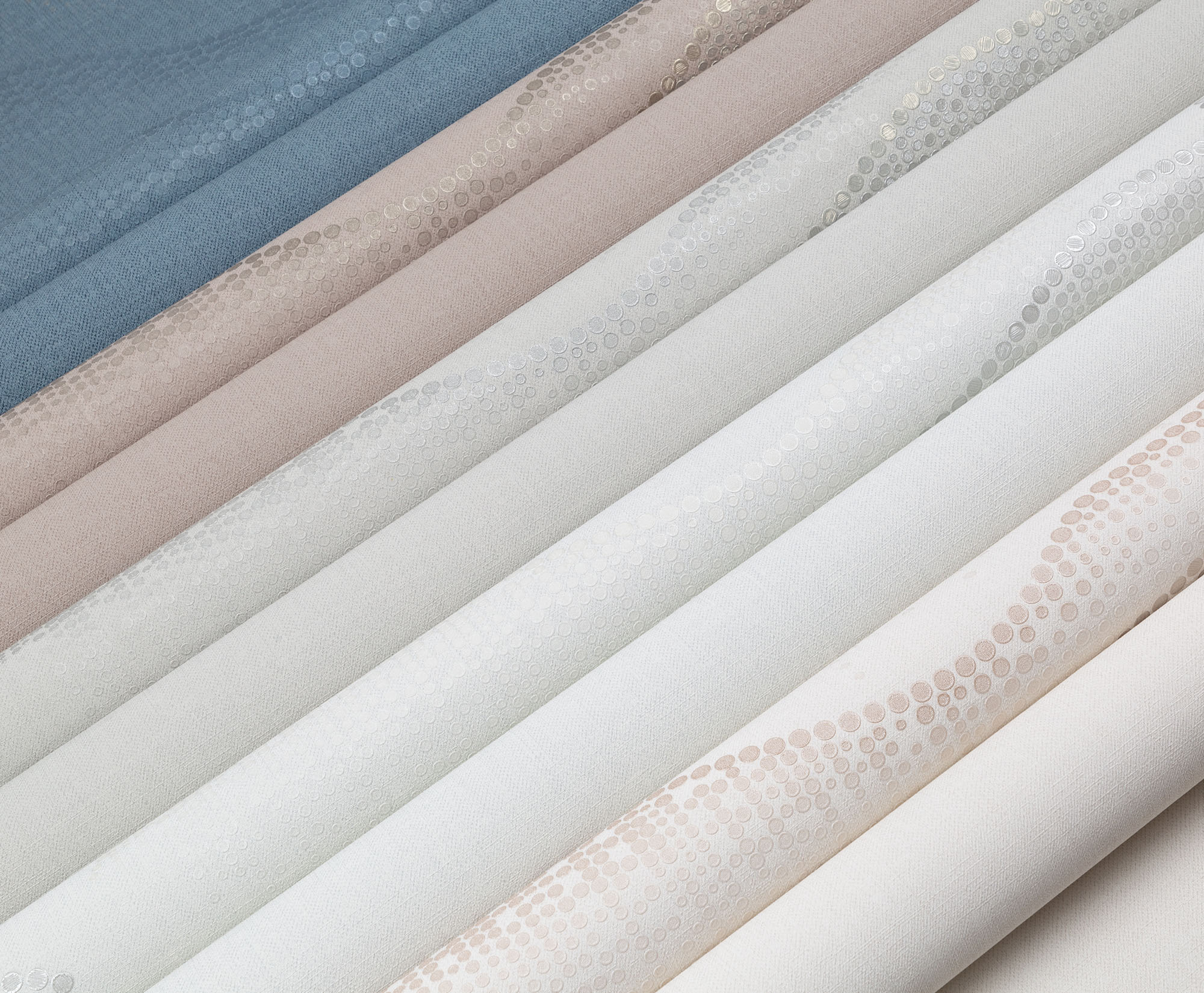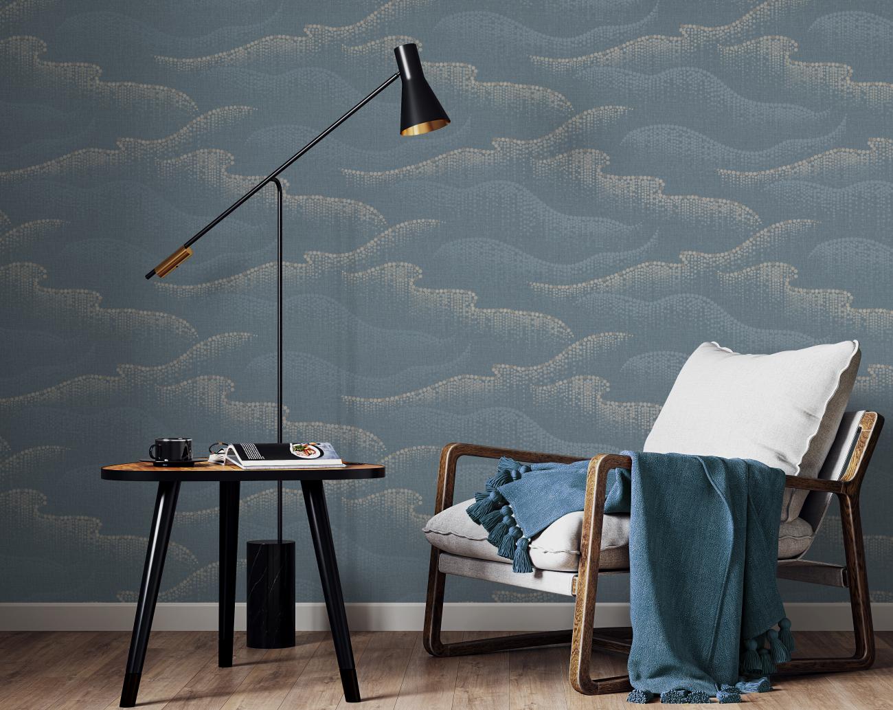 Плотная на ощупь, она хорошо скрывает мелкие неровности стены. Элегантная фактура ткани окутывает интерьер домашним уютом и теплом, а диагональное переплетение стежков создает тактильный эффект.