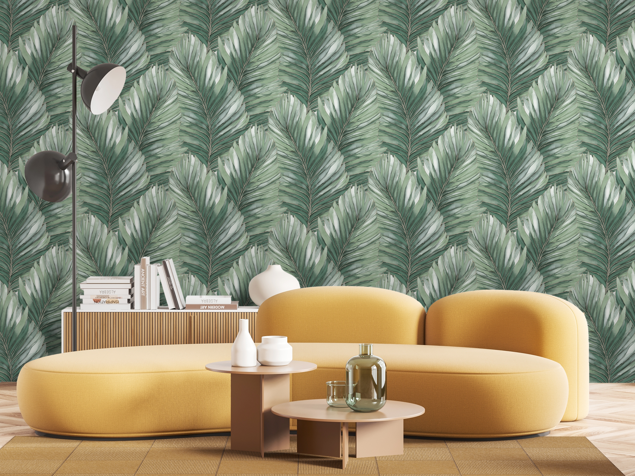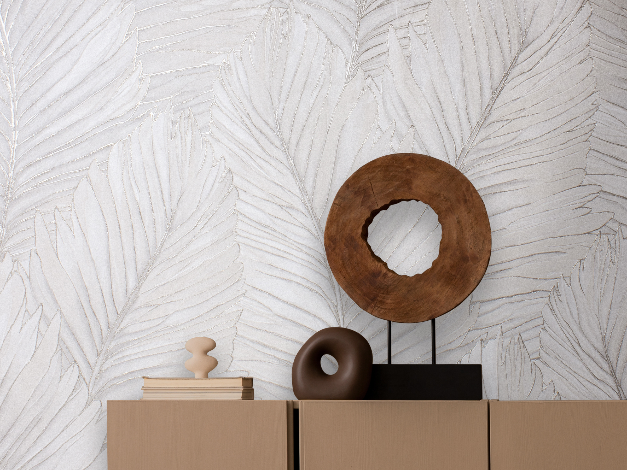 Как хочется заглянуть внутрь и узнать, что скрывается за этими невероятно притягательными листьями? Пусть это останется тайной! Давайте наслаждаться легкостью композиции и невероятным объёмными формами, завораживающей фактурой и интересным богатым фоном-компаньоном. Такие листья точно есть только у нас, ведь наша задача делать интерьеры лучше!