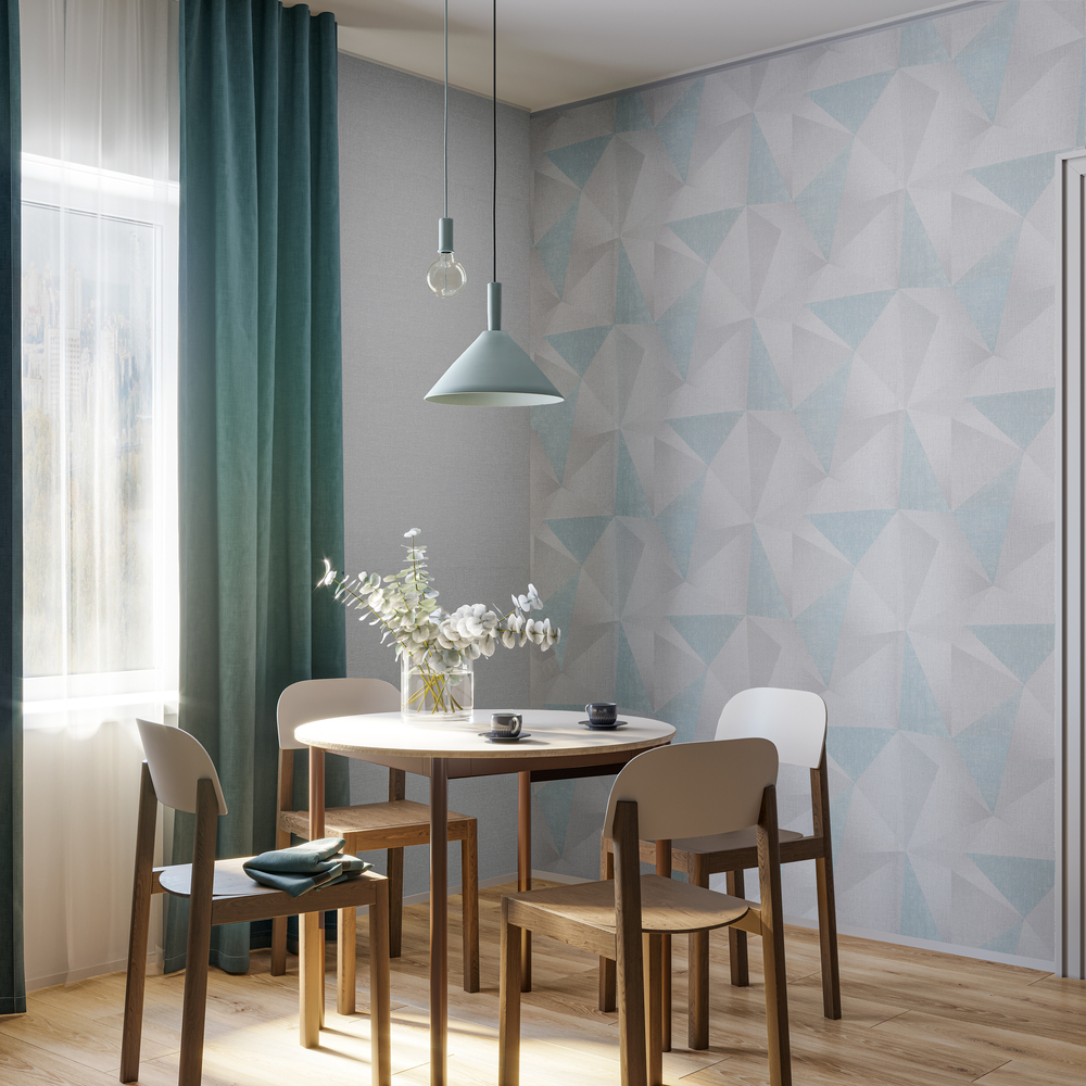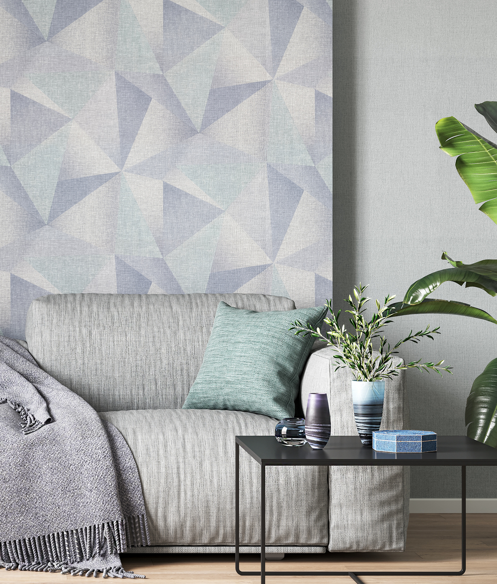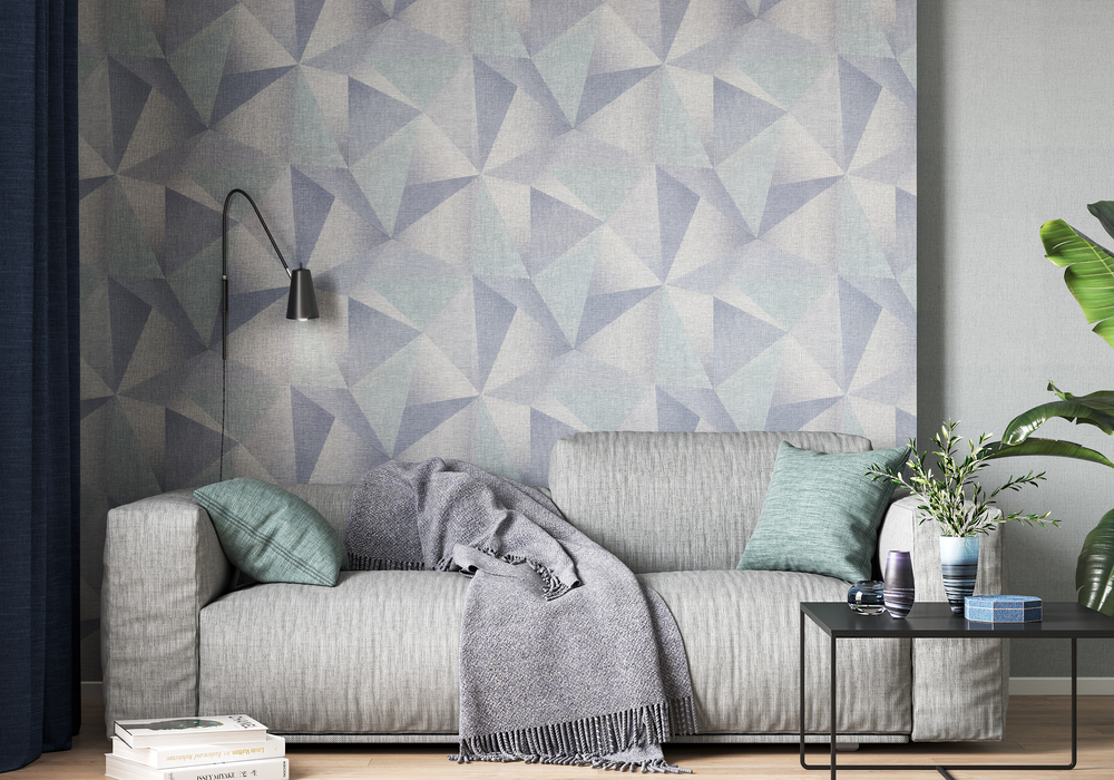 Мотив представляет собой геометрический узор из ровных линий, сложенных в калейдоскоп из треугольных пирамид. Их кристаллические грани образуют бесконечную глубину пространства, а градиентные переходы цвета придают 3D-объем. Геометрическая композиция может создавать выразительный акцент или служить основой интерьера. Треугольные элементы зрительно расширяют комнату, подчеркивая достоинства и скрывая недостатки планировки.