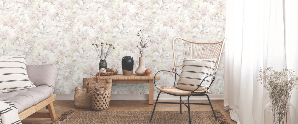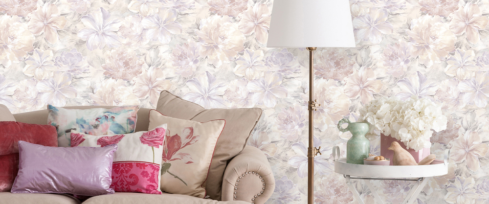 Воздушность и невесомость подчёркнута «шелковым» тиснением цветов, объёмным плавным контуром, очень нежными колористиками. В этой коллекции мы безусловно делаем ставку на пастельные тона, имеющими превосходный эффект: делать визуально просторнее даже самую маленькую комнатку.
