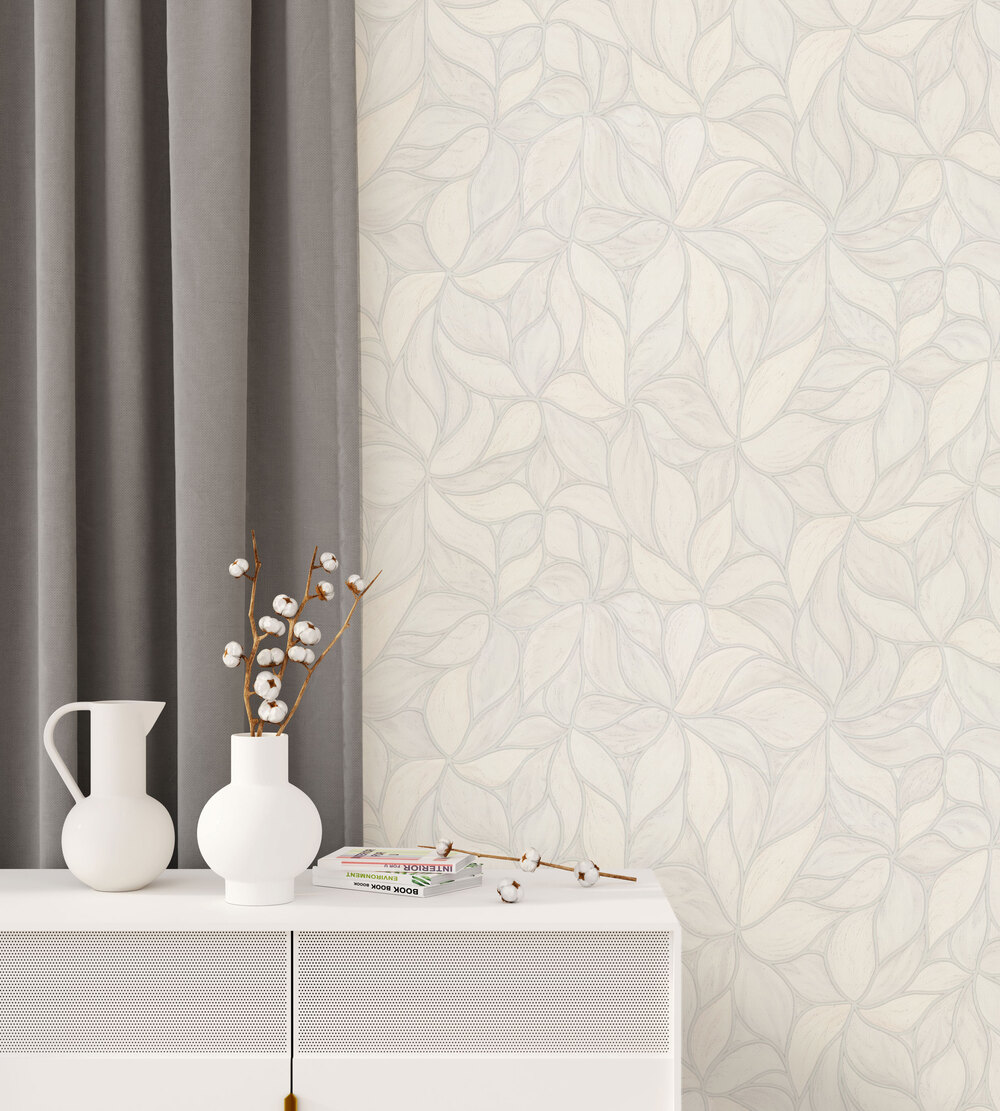 Фрактальные формы цветов, с причудливыми узорами внутри лепестков отражают формулу золотого сечения и представляют собой гармоничный дизайн, облагораживающий пространство. Необычная техника тиснения внутри лепестков делает дизайн глубоким и многослойным. Лепестки имеют выраженную текстуру, имитирующую прожилки на растениях в форме фрактальных узоров, а вкрапления глиттера создают ассоциацию со свежестью росы.
