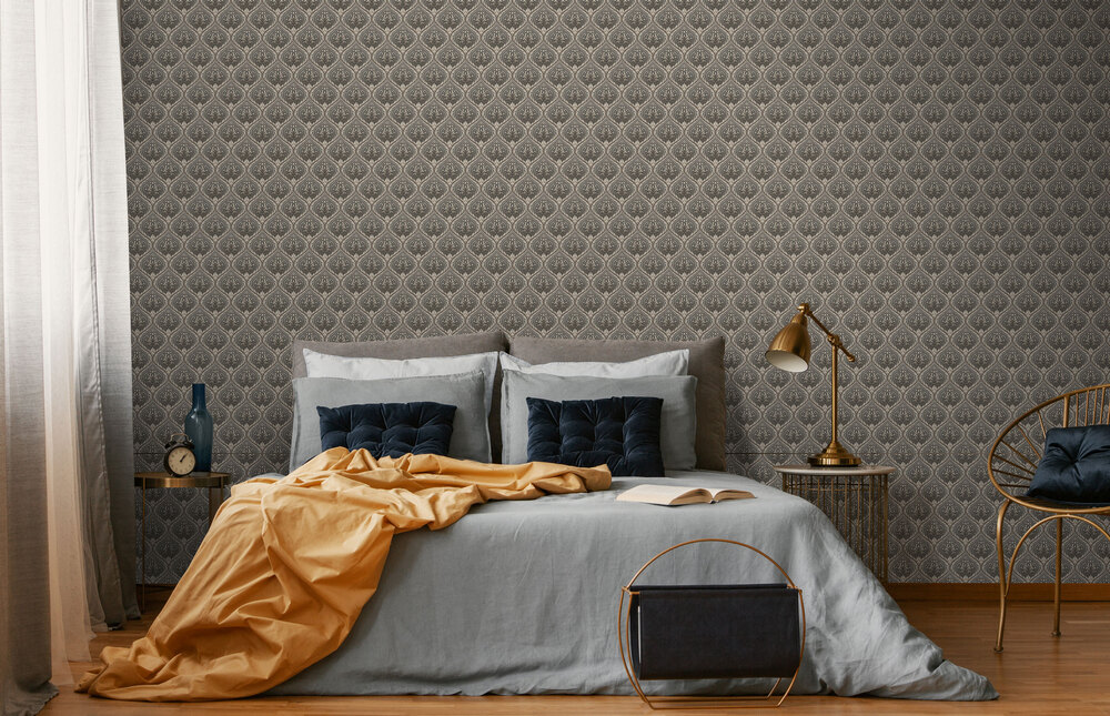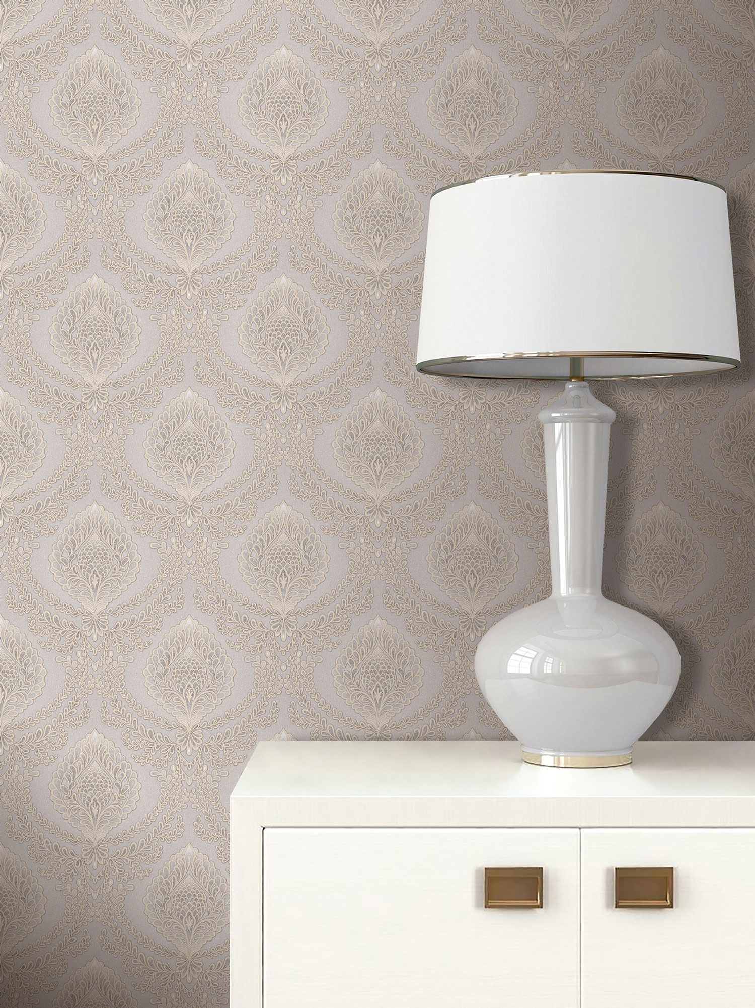 Яркие цвета, причудливые орнаменты, блеск металлов — «Gambit» словно впитала в себя несколько стилей и эпох. Коллекция состоит из четырех частей: первая — декоративный дамаск, напоминающий по своим очертаниям оперение птицы. Вторая — не менее сложный оловер, своим орнаментом заполняющий всю поверхность основы. Третья часть — словно ярчайший пример стиля ар деко: стилизованные раковины, заполненные невесомым перламутровым градиентом. Четвертая — матовая лаконичная основа с фактурой штукатурки, которая очень органично вписывается в этот идеальный квартет.