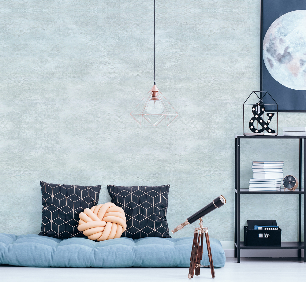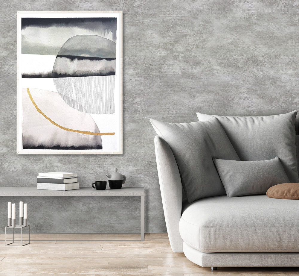 Энергетика камня, пусть даже искусственного, привнесет ощущение стабильности и покоя. А легкий геометрический принт с металлическими акцентами добавит ощущение легкого шика.