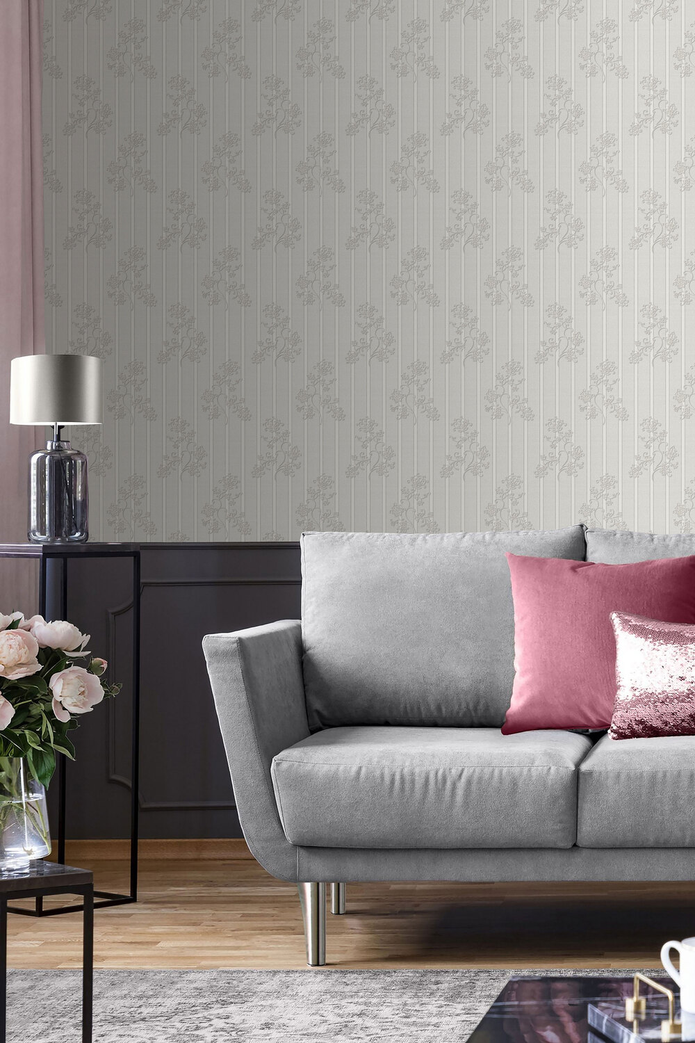 Коллекция «Pompadour» — словно отражение духа Франции. На растительных орнаментах изящные стебли с листьями и лепестками цветов стремятся вверх. Сложная фактура основы создает имитацию изобилующего деталями текстиля, а перламутровая кайма, пущенная по краям лепестков в узоре, — словно шелковые нити, вышедшие из-под руки умелой мастерицы.