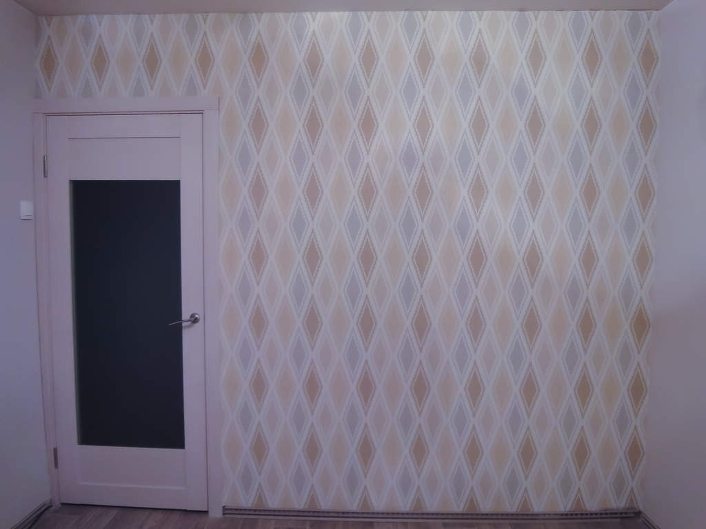 Но ещё страшнее, когда заказчик говорит, что стены мы ровнять не будем и показывает мне, что я буду клеить на стены... Белые, матовые, без фактуры. Глаза боятся, а руки делают.