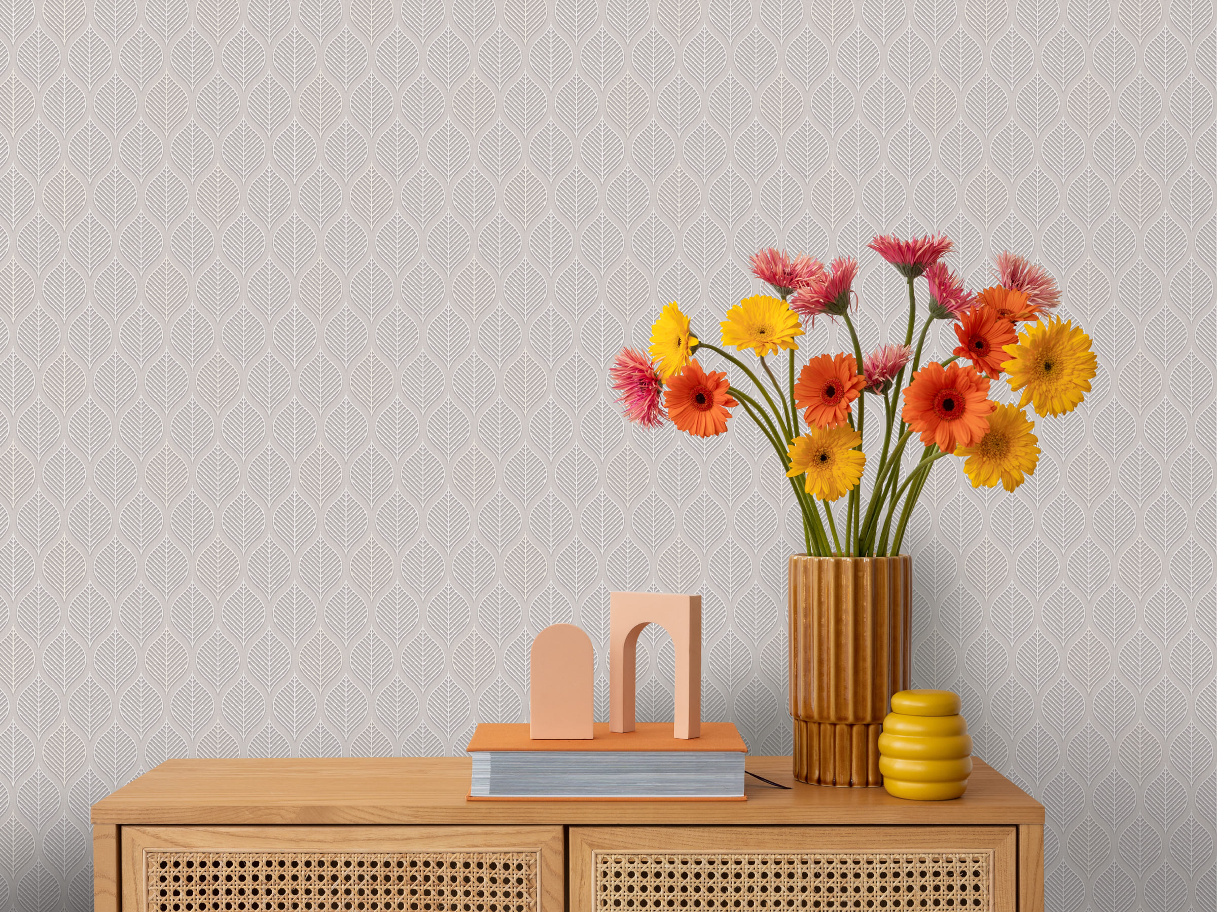 Изящная графика с четкими рельефными контурами листьев создает поистине завораживающую игру света и тени. Листики будто вышиты металлизированной нитью на матовом текстильном фоне. Они создают объемный тактильный рисунок, который хочется потрогать.
