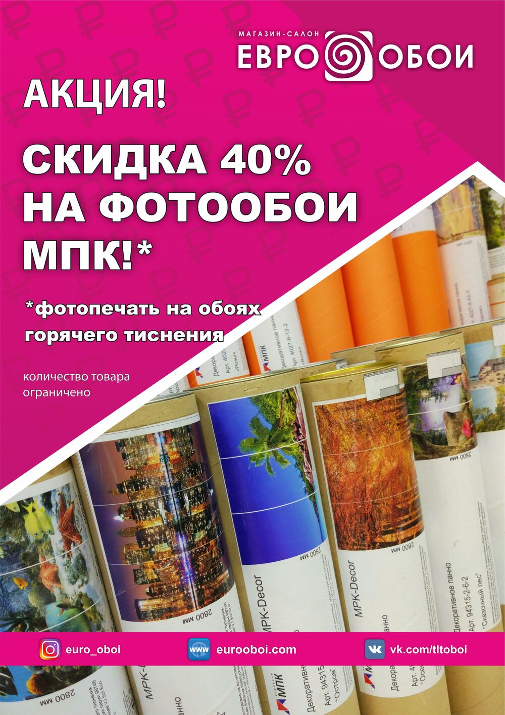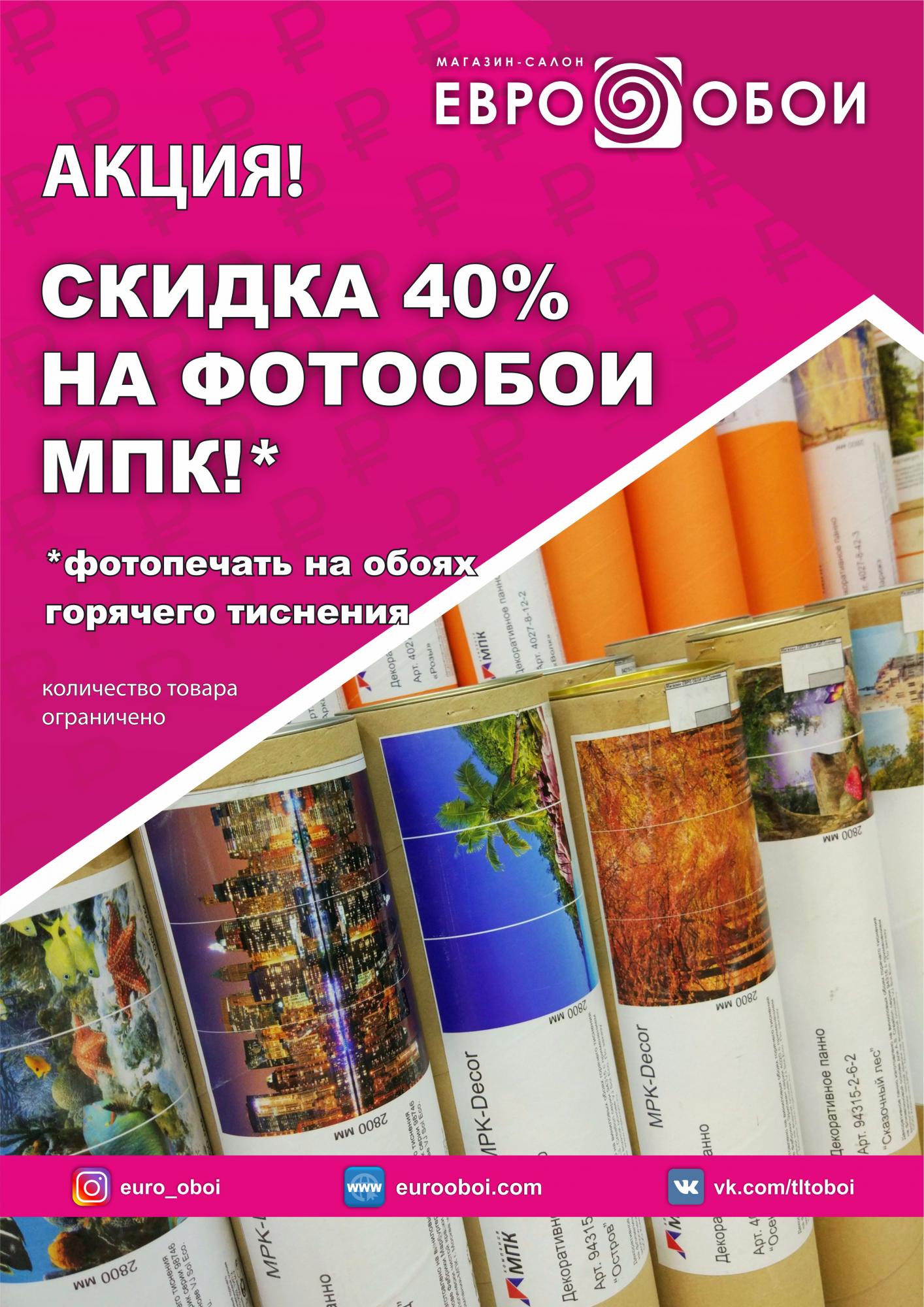 СКИДКА -40% НА ВСЕ ФОТООБОИ ОТ ФАБРИКИ "МПК"!